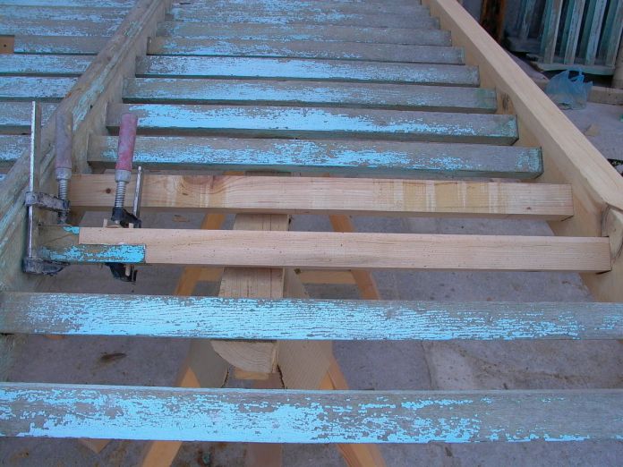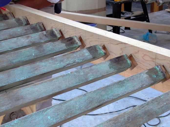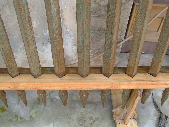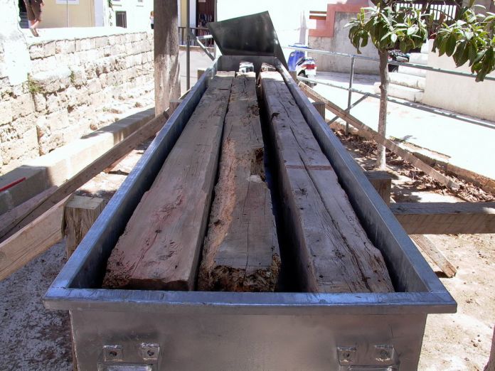 Εμποτισμός μέσω επάλληλων επαλείψεων στα κιγκλιδώματα και στα νέα τεμάχια ξύλου που χρησιμοποιήθηκαν.