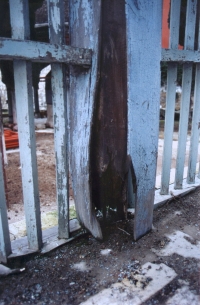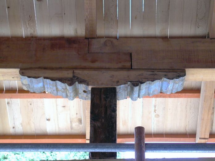 Ηλεκτροχημική διάβρωση που συνοδεύεται από σκουρόχρωμη απόχρωση, εντοπίστηκε στα σημεία ύπαρξης μεταλλικών συνδέσμων. Τέλος, αλλοιώσεις παρατηρήθηκαν από τη δράση του ανέμου που προκάλεσε διάβρωση στην εξωτερική επιφάνεια των ξύλων και από επανειλημμένες μηχανικές φορτίσεις.