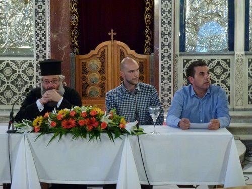 Ομιλητές ήταν ο κ. Νίκος Ζίας, ομότιμος καθηγητής της Ιστορίας της Τέχνης του Πανεπιστημίου Αθηνών και Πρόεδρος του Ευρωπαϊκού Κέντρου Βυζαντινών και Μεταβυζαντινών Μνημείων, ο κ. Γ. Μυλωνάς, ιστορικός της τέχνης και ο κ. Γιώργος Παυλόπουλος συντηρητής αρχαιοτήτων και έργων τέχνης, η εταιρεία του οποίου ανέλαβε το έργο συντήρησης των επτά αγνωστων στο ευρύ κοινό αξιόλογων πινάκων του Κων. Παρθένη.