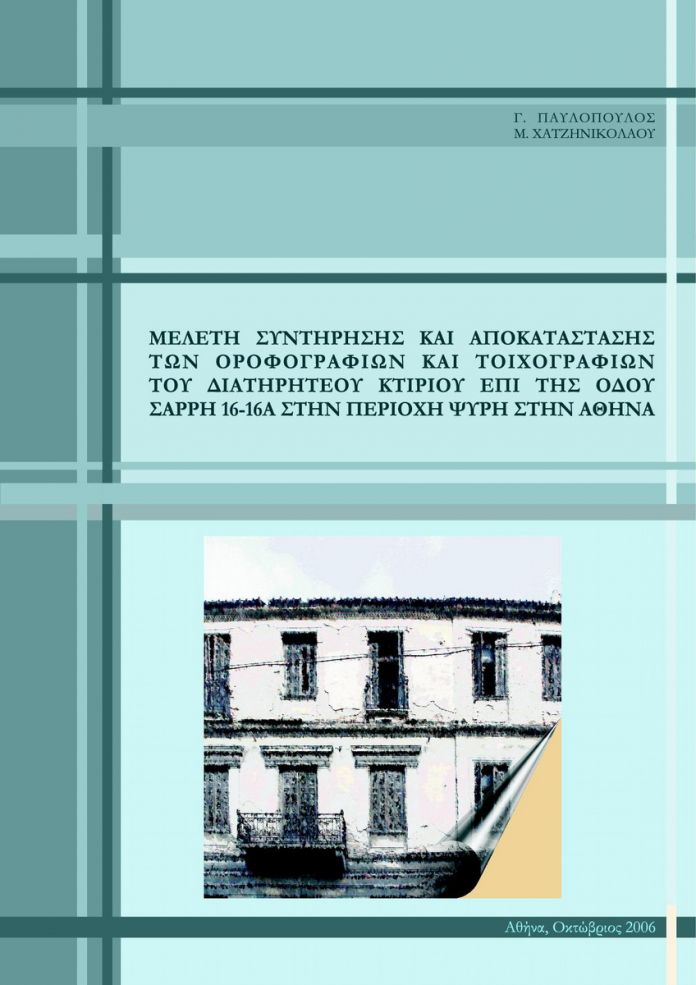 ΔΙΑΤΗΡΗΤΕΟ ΚΤΙΡΙΟ ΣΑΡΡΗ 16, ΨΥΡΡΗ ΑΘΗΝΑ"Μελέτη συντήρησης και αποκατάστασης τοιχογραφιών και οροφογραφιών του διατηρητέου κτιρίου"
